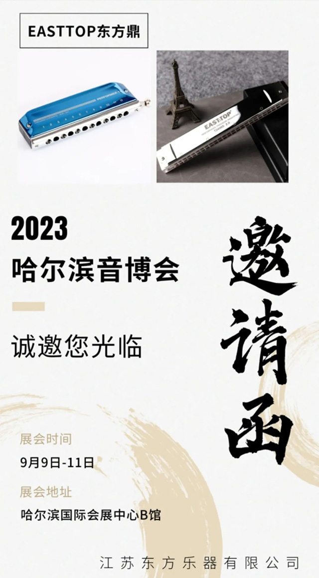 北国风光,松花江畔,2023哈尔滨国际音乐文化产业博览会将于9月9日-11日在哈尔滨国际会展中心B馆盛大开幕!东方乐器将入驻此次哈尔滨音博会,为广大琴友呈现更新换代、全面升级的东方口琴!展位号:Y13,东方乐器与你不见不散!