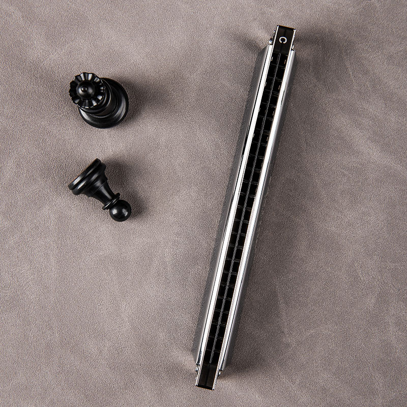 24 Hole Tremolo Harmonica C Key used specially supplied Phosphor Bronze Reeds , high sensitivity, weak tone clear, strong explosive force, durable and difficult to be broken, sound quality indemnifier. Advanced transparent ABS resin combs,waterproof, durable and non-toxic. Thickened copper-nickel base plate, super-air tightness.